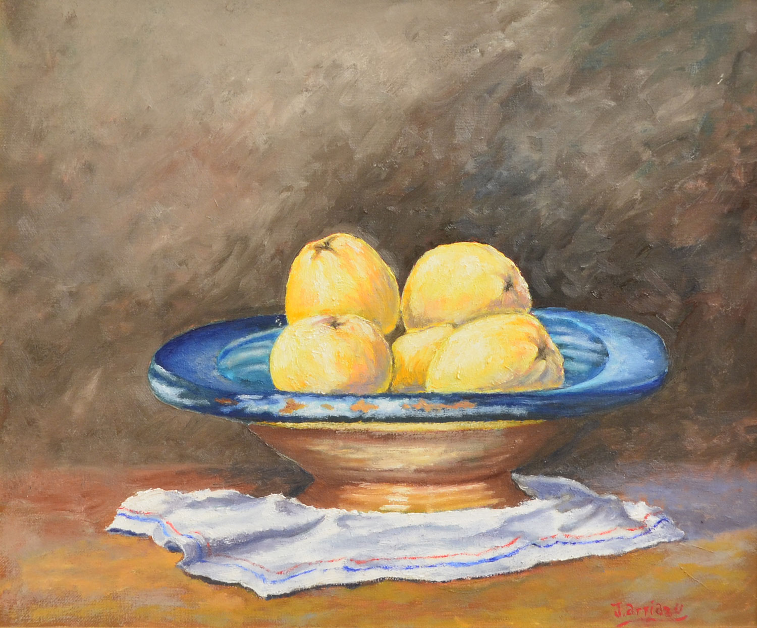 Cerámica azul y manzanas